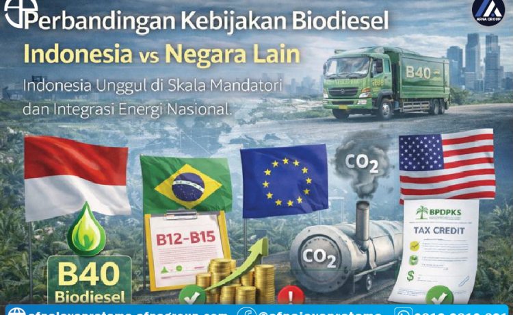 Artikel ini membahas perbandingan kebijakan biodiesel Indonesia vs negara lain, sekaligus menempatkan Indonesia sebagai pemain strategis dalam ekosistem energi terbarukan global.
