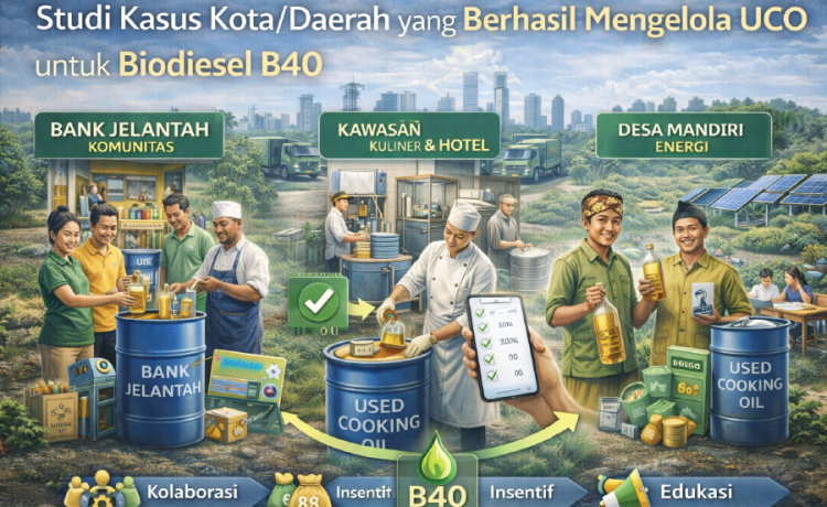 Pengelolaan minyak jelantah atau Used Cooking Oil (UCO) mulai dilirik sebagai bagian dari strategi ekonomi sirkular dalam mendukung biodiesel B40. Selain mengurangi ketergantungan pada CPO, pemanfaatan UCO membantu menekan limbah minyak goreng yang selama ini berisiko mencemari lingkungan dan kesehatan. Beberapa kota/daerah di Indonesia menunjukkan praktik baik dalam membangun sistem pengumpulan UCO yang rapi, berkelanjutan, dan bernilai ekonomi.