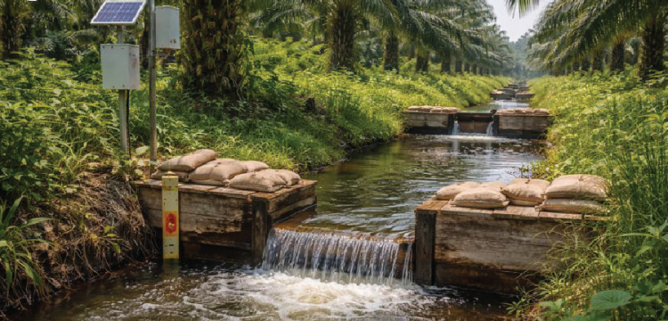 Manajemen air dan konservasi lahan gambut melalui kanal berjenjang dan pemantauan muka air tanah penting untuk mencegah kebakaran, subsidence, dan menjaga keberlanjutan budidaya.